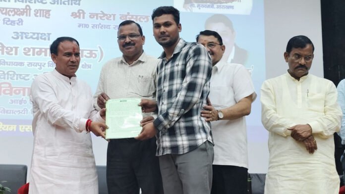 नियुक्ति पत्र प्रदान करते शिक्षा मंत्री धन सिंह रावत।