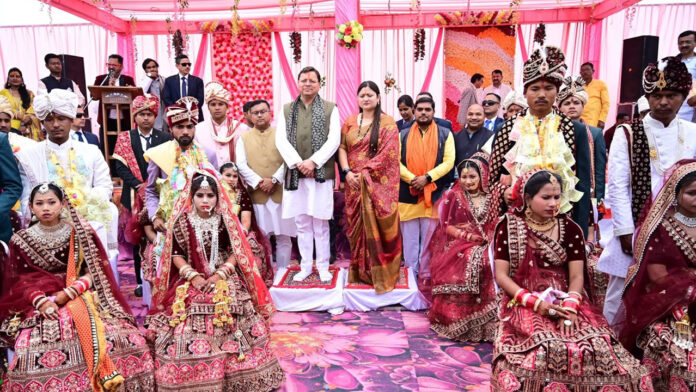मुख्यमंत्री ने नव दम्पतियों को उनके सुखमय वैवाहिक जीवन के शुभकामनाएं देते हुए कहा कि कन्यादान को हमारे समाज व संस्कृति में महादान की संज्ञा दी गई है। उन्हें भी एक अभिभावक के रूप में विवाह में शामिल होने का अवसर मिला यह सौभाग्य की बात है। उन्होंने कहा खटीमा एक बगीचा है जिसमंे सभी समुदाय के लोग प्रेम भाव से रहते हैं। यह एक लघु भारत का स्वरूप लगता है, इसी भावना का उदाहरण यह सामूहिक विवाह भी है।