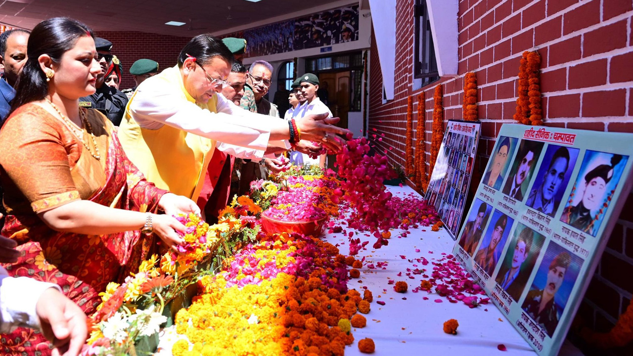 कार्यक्रम के दौरान मुख्यमंत्री ने अपने पिता स्व. सूबेदार शेर सिंह धामी के चित्र पर श्रद्धांजलि अर्पित की और शहीदों को नमन करते हुए उनके परिजनों व वीर नारियों को शॉल ओढ़ाकर सम्मानित किया। इस अवसर पर 60 वीर नारियों और 80 पूर्व सैनिकों को सम्मानित किया गया।