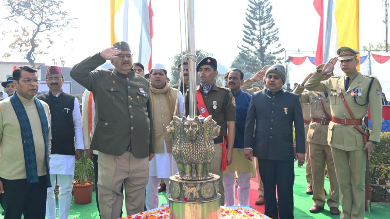 77वें गणतंत्र दिवस पर पुलिस लाइन रुद्रपुर में जनपद प्रभारी मंत्री गणेश जोशी ने फहराया राष्ट्रीय ध्वज