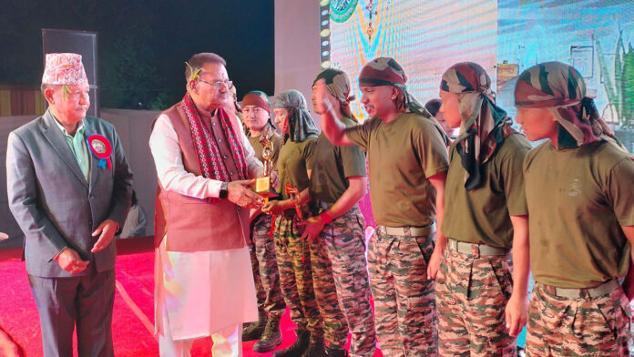 इस अवसर पर कैबिनेट मंत्री गणेश जोशी ने 5/ 1 जीआर गोरखा राइफल के जवानों और वरिष्ठ जानो को भी सम्मानित किया। इस दौरान कैबिनेट मंत्री गणेश जोशी ने कहा कि इस प्रकार के आयोजन हमारी संस्कृति के प्रचार प्रसार और उसके संरक्षण और संवर्धन के कार्य करने के साथ ही आगामी युवा पीढ़ी को अपनी समृद्ध संस्कृति से जोड़ने का भी कार्य करती है।