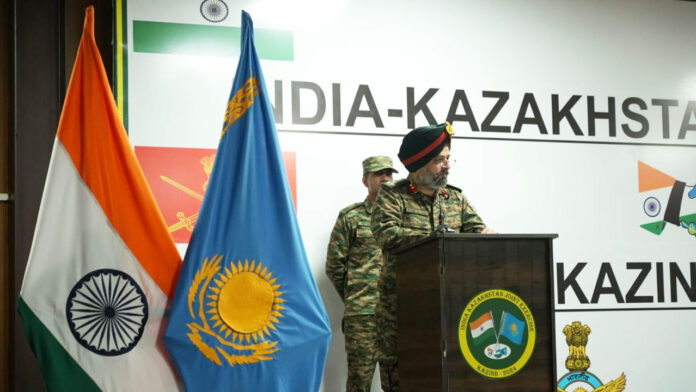 चमोली। भारत-कजाकिस्तान संयुक्त सैन्य अभ्यास काज़िंद-2024 का 8वां संस्करण सूर्या विदेश प्रशिक्षण नोड, औली, उत्तराखंड में संपन्न हुआ। यह अभ्यास 30 सितंबर से 13 अक्टूबर तक आयोजित किया गया। संयुक्त अभ्यास के समापन समारोह में कजाकिस्तान सेना के के उप प्रमुख कर्नल डी खमितोव, कजाकिस्तान सेना के दक्षिणी कमान के क्षेत्रीय बल कमांडर कर्नल नुरलान करिबयेव और ब्रिगेडियर उपिंदर पाल सिंह, कमांडर 116 इन्फैंट्री ब्रिगेड ने भाग लिया।