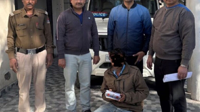 साईबर पुलिस टीम ने अथक मेहनत एवं प्रयास से तकनीकी संसाधनों का प्रयोग करते हुये साक्ष्य एकत्रित कर कार्यवाही करते हुये अभियोग के मास्टरमाइण्ड कैलाश सैनी पुत्र पप्पू राम सैनी निवासी ग्राम व पो. उमरैण, थाना अकबरपुर, जिला अलवर, राजस्थान, को जयपुर हाईवे पर रिंगस बाईपास, जिला सीकर, राजस्थान से गिरफ्तार किया गया जिसके कब्जे से सम्बन्धित बैंक खाता जिसमें पीडित से धोखाधडी कर रुपये डलवाये गये थे का एसएमएस अलर्ट नंबर सहित घटना में प्रयुक्त एक मोबाइल हैण्ड सैट मय दो सिम कार्ड बरामद हुये।