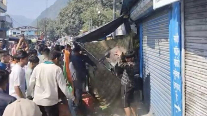 देहरादून। गढ़वाल की पहाड़ियों में सांप्रदायिक हिंसा और मुस्लिम समुदाय को निशाना बनाने की घटनाएं लगातार जारी हैं। चमोली जिले के कर्णप्रयाग पुलिस थाने के अंतर्गत गौचर कस्बे में दो अलग-अलग समुदायों के लोगों के बीच झगड़े के बाद उपद्रव हुआ। घटना के बाद हिंदुत्व समूहों ने मुख्य बाजार में जुलूस निकाला और मुसलमानों की दुकानों और खोखों को निशाना बनाया। भीड़ द्वारा जुलूस के साथ मौजूद पुलिसकर्मियों की मौजूदगी में दुकानों पर हमला करने का वीडियो सामने आया है।
