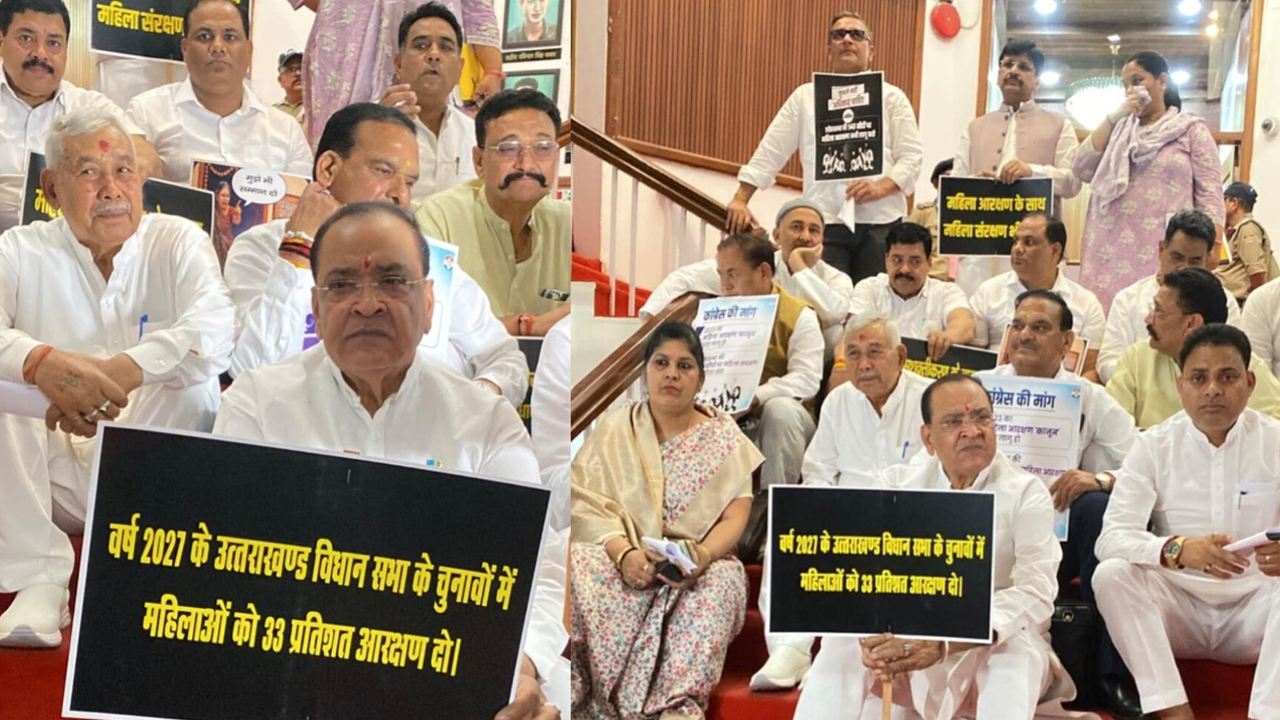 मंगलवार को उत्तराखण्ड विधानसभा के विशेष सत्र से पहले सदन की सीढ़ियों पर धरना देते हुए और बाद में सदन के अंदर कांग्रेस मुखर दिखी। महिला आरक्षण को लेकर कांग्रेस विधायकों ने विधानसभा गेट पर जोरदार प्रदर्शन किया। सभी विधायकों ने एक सुर में महिलाओं की सुरक्षा, सम्मान और न्याय की मांग उठाई।
