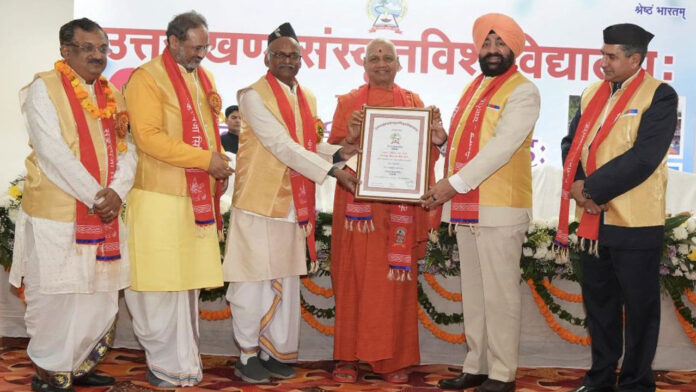 आज उत्तराखण्ड संस्कृत विश्वविद्यालय, हरिद्वार के दीक्षांत समारोह में स्वामी गोविंद देव गिरी, डॉ. चिन्मय पंड्या एवं आचार्य श्रीनिवास बरखेड़ी को विद्या वाचस्पति (डी लिट) की उपाधि के साथ ही छात्र-छात्राओं को स्वर्ण पदक, पीएचडी व स्नातक एवं परास्नातक उपाधि भी प्रदान की।