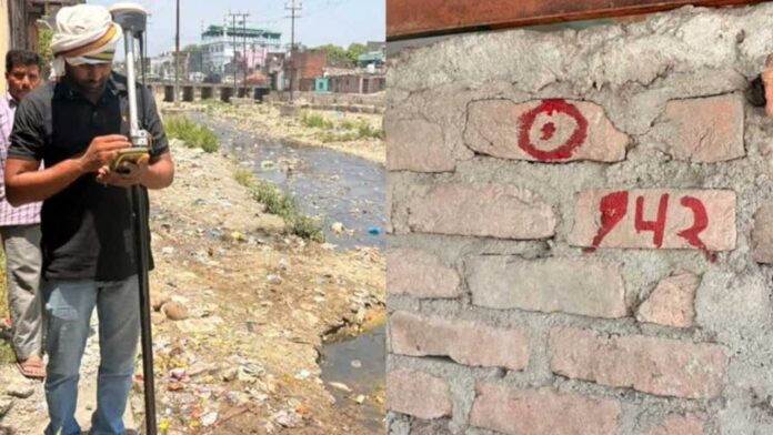 - लोक निर्माण विभाग की टीम हटाने वाले मकानों पर लगा रही लाल निशान
