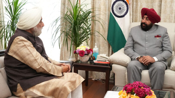 राज्यपाल गुरमीत सिंह से भेंट करते हेमकुंड साहिब मैनेजमेंट ट्रस्ट के अध्यक्ष नरेंद्रजीत सिंह बिंद्रा।