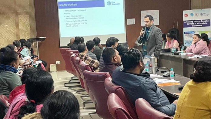 देहरादून। राष्ट्रीय तम्बाकू नियंत्रण कार्यक्रम जनपद देहरादून द्वारा सोमवार और मंगलवार को संभागीय प्रशिक्षण केंद्र चंदर नगर देहरादून में तंबाकू उन्मूलन केंद्र का संचालन विषय पर दो दिवसीय हैंड्स ऑन प्रशिक्षण का आयोजन किया गया। गढ़वाल मंडल के समस्त जनपदों हेतु आयोजित इस प्रशिक्षण में चमोली, पौड़ी, रुद्रप्रयाग, उत्तरकाशी, टिहरी, देहरादून, हरिद्वार जनपदों से डेंटल सर्जन, राष्ट्रीय किशोर स्वास्थ्य कार्यक्रम से काउंसलर तथा एन टी सी पी काउंसलर द्वारा प्रतिभाग किया गया।