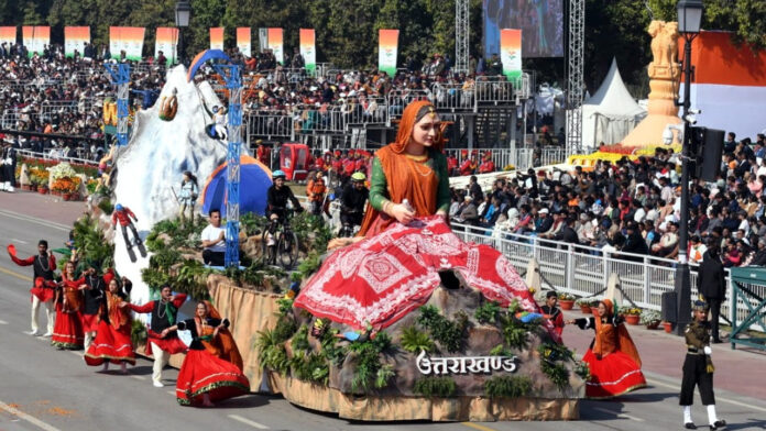 देहरादून। कर्तव्य पथ पर गणतंत्र दिवस परेड में ‘सांस्कृतिक विरासत एवं साहसिक खेल’ पर आधारित उत्तराखंड की झांकी को लोगों की पसंद के आधार पर देश में तीसरा स्थान मिला है। गुजरात की झांकी ‘स्वर्णिम भारतः विकास और विरासत’ को प्रथम तथा उत्तर प्रदेश की झांकी महाकुंभ 2025-स्वर्णिम भारत विकास और विरासत को द्वितीय स्थान मिला।