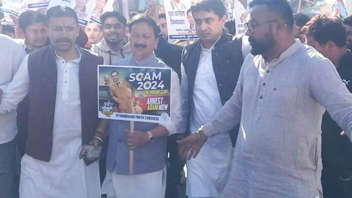 भारतीय युवा कांग्रेस के राष्ट्रीय अध्यक्ष उदय भानु चिब ने कहा कि सरकार अडानी के नशे के धन्धे में लिप्त है और युवा रोजगार के लिये भटक रहा है। उत्तराखंड युवा कांग्रेस अध्यक्ष सुमित्तर भुल्लर ने कहा कि राज्य सरकार युवाओं को नशे में झोंक रही है और युवा बेरोजगार होते जा रहा है। इस दौरान पुलिस ने युवाओं को बरिकेटिंग लगाकार रोकने का प्रयास किया जहां युवओं व पुलिस के बीच धक्का मुक्की हुई।